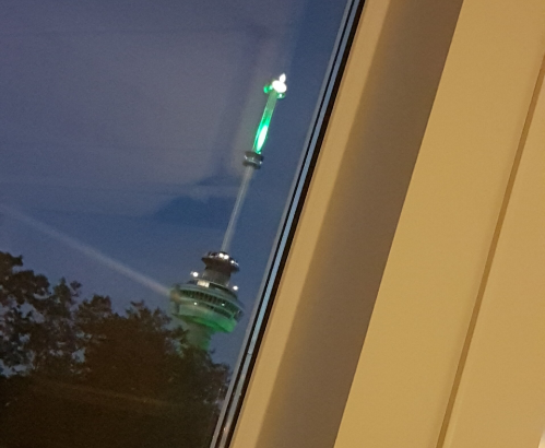 Zoals misschien bekend mag je als je gegeten, gedronken en getoiletteerd hebt naar huis. Dus ik at, ik dronk, ik toiletteerde maar mn lichaam voelde niet als van mijzelf. Draaierig en misselijk. Steeds als ik had geprobeerd te staan en weer zitten moest ik overgeven. Toen ik uit Eindelijk wilde plassen ging het daar ook mis. Het was inmiddels half 8. En de arts werd gebeld om te zorgen dat ik naar een andere kamer kon. Eventueel om een nacht te blijven. Dat wilde ik natuurlijk niet maar de dagbehandeling sluit om 8 uur. Kwart voor acht gingen we op weg naar de hele andere kant van het ziekenhuis. En werd ik op een zaal gelegd met 1 andere patiënt. Manlief en ik wilde echt graag naar huis, maar het was echt niet goed. Toen ik wilde toiletteren op de zaal ging t weer mis. Mn bloeddruk was op een gegeven moment 69/40 ofzo. dus ze adviseerde met klem te blijven. Dus nu is het 03;50. Ik ven net zonder problemen gaan plassen dus ik hoop oprecht dat ik over een paar uur lekker thuis ben. ik heb wel echt een mooi uitzicht op deze zaal, ik kijk zo tegen de euromast aan :)