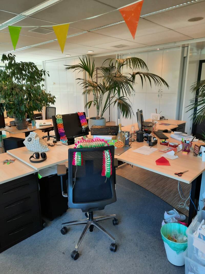 Eenmaal thuis, en weer naar kantoor, wachtte mij nog een verrassing, mijn werkplek was versierd. Inmiddels weet mijn omgeving ook dat als ik jarig ben, ik ook ECHT jarig ben. Ik loop nog net niet met een sjerp rond met “ birthday girl”.